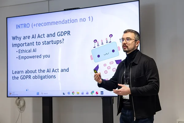 The session opened with a simple observation: most startups use AI, and almost all process personal data. Sometimes this happens directly in the product. Other times it happens through analytics, chatbots, recommendation engines, CV screening, dynamic pricing, or even internal tools.Using AI does not require selling an AI product. Even deploying an internal system for HR, marketing, or customer support can trigger obligations under the AI Act. Similarly, GDPR applies whenever personal data is processed — including during model training, testing, or optimisation.